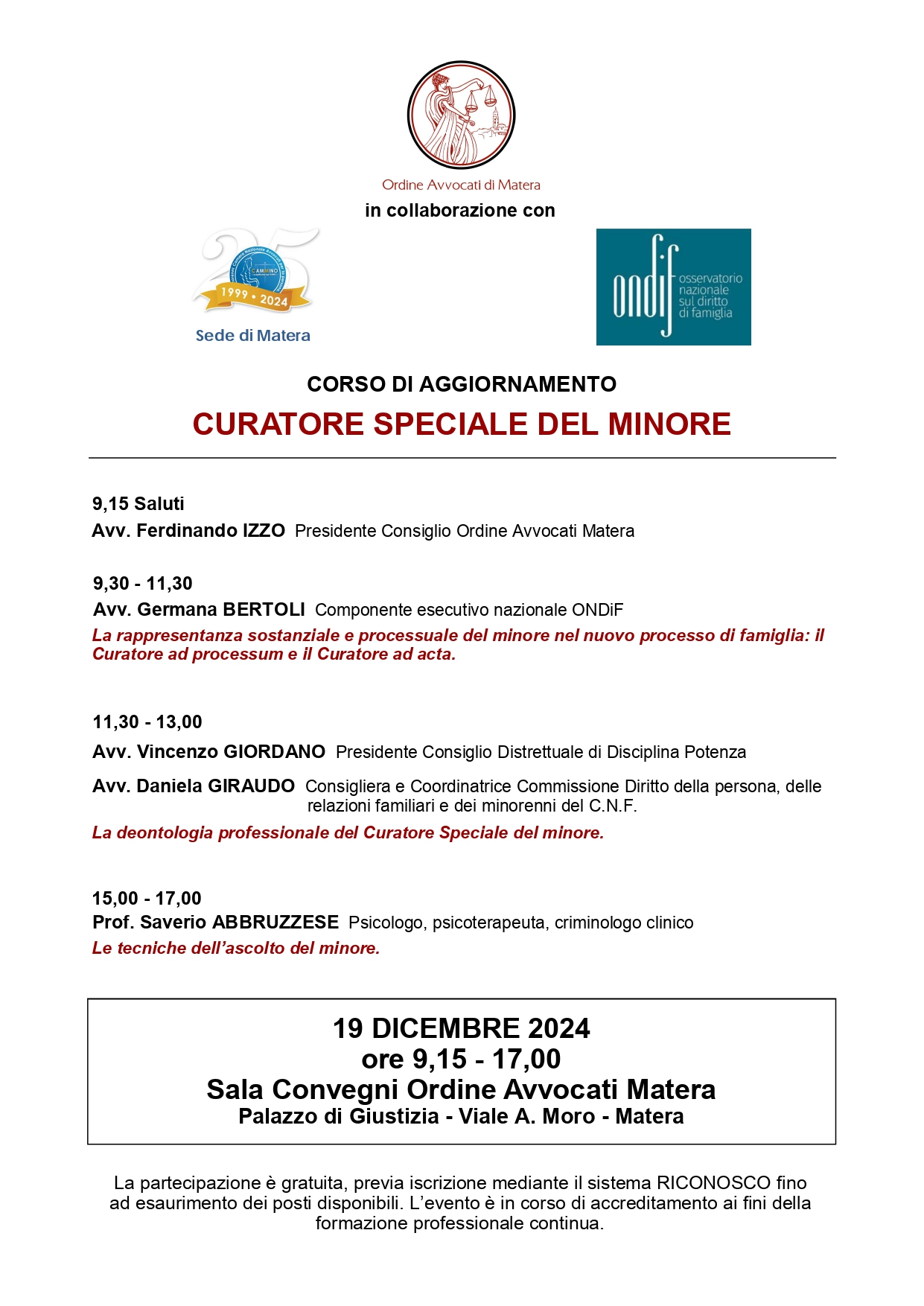 Sede: Sala Convegni Ordine Avvocati Matera
