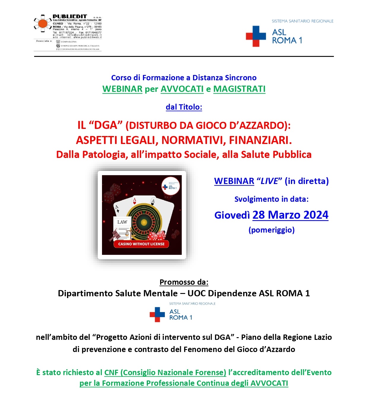 IL “DGA” (DISTURBO DA GIOCO D’AZZARDO): ASPETTI LEGALI, NORMATIVI, FINANZIARI