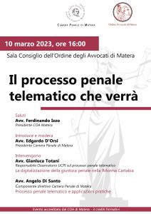 Sede: Sala Convegni dell'Ordine degli Avvocati di Matera - Palazzo di Giustizia - Viale A. Moro - Matera