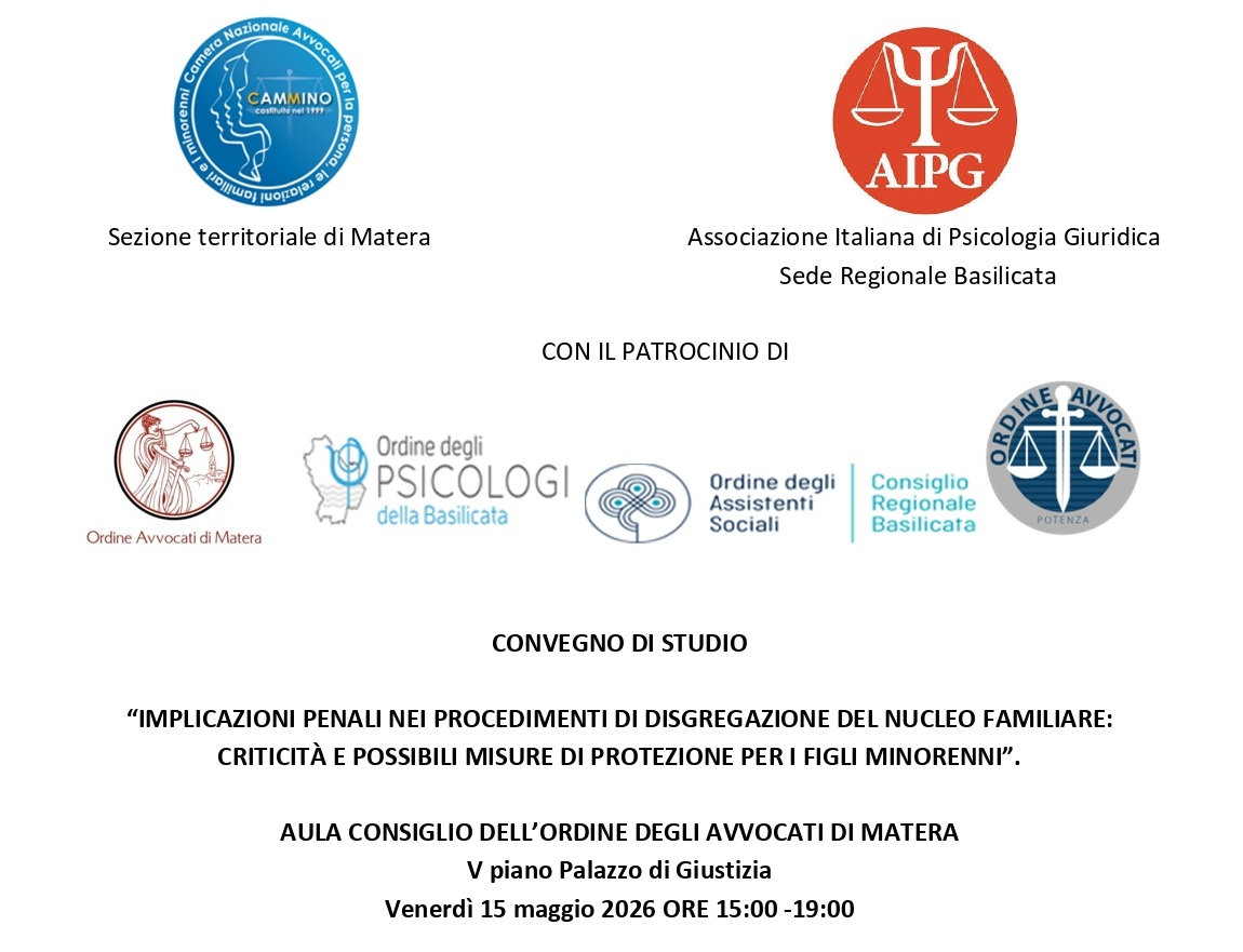 Sede: Sala Convegni - Ordine Avvocati Matera - Palazzo di Giustizia - Viale A. Moro - Matera