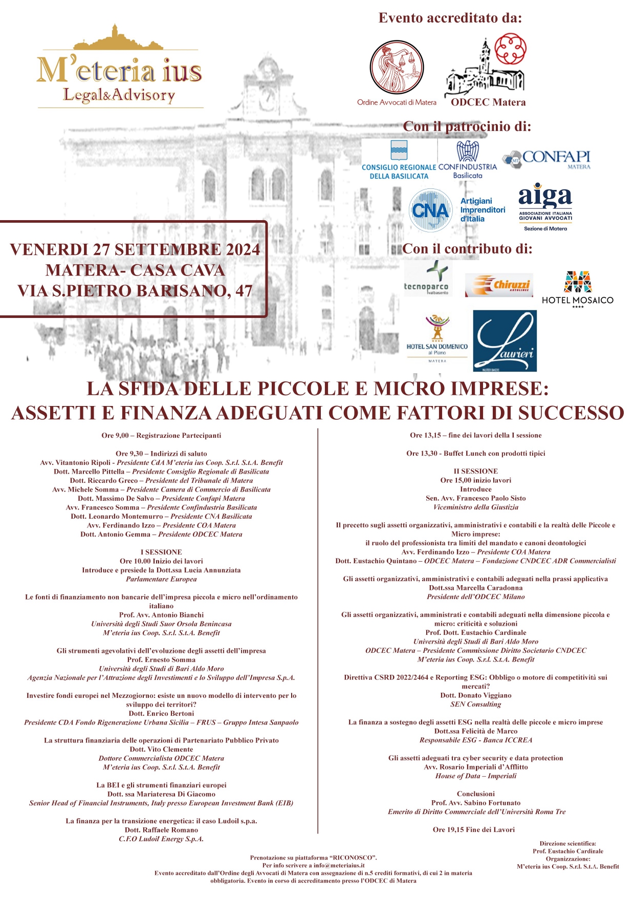 Crediti formativi: CINQUE di cui DUE in materia obbligatoria (per partecipazione all'intero evento)
