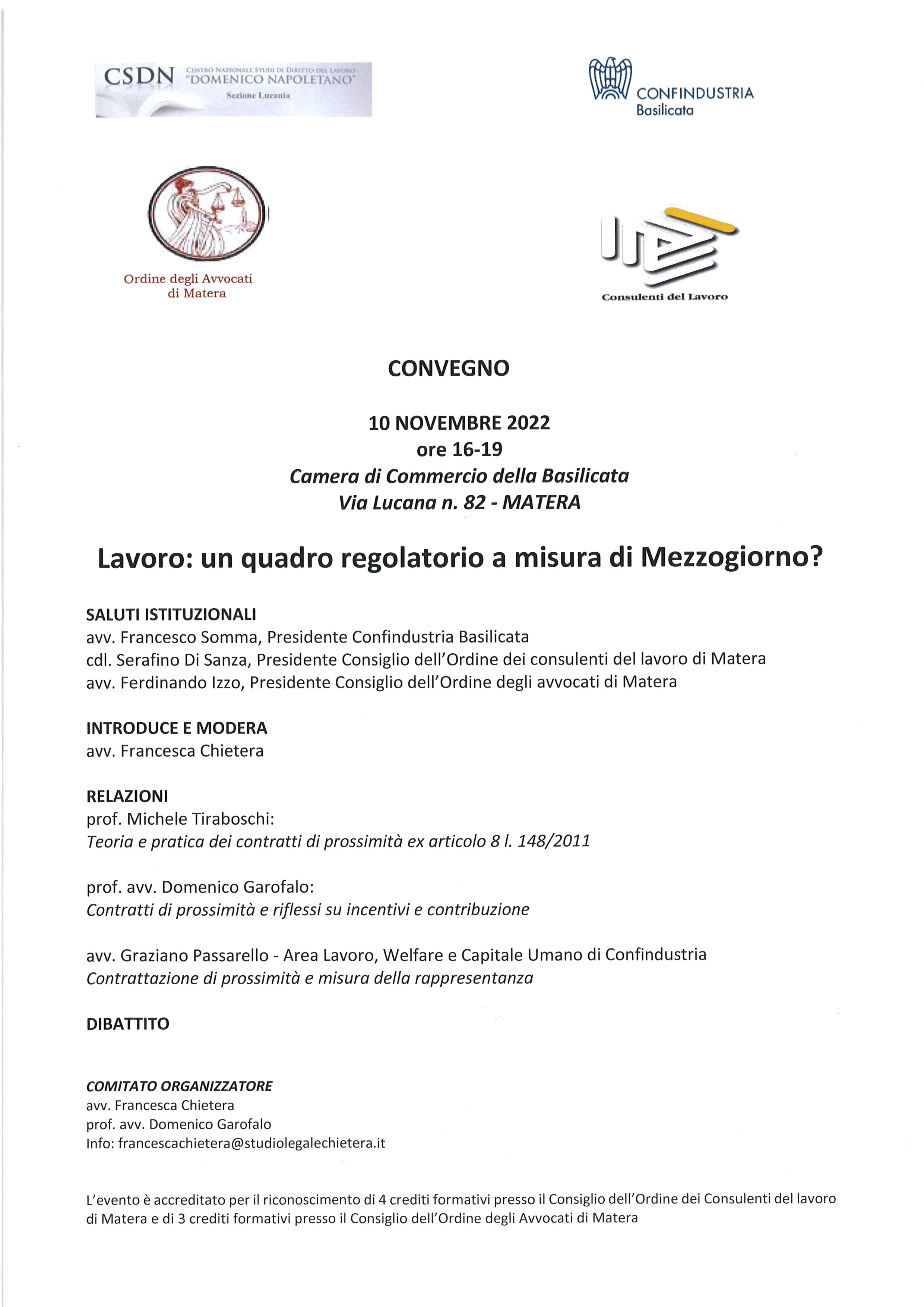 Sede: Camera di Commercio della Basilicata - Via Lucana 82 - Matera