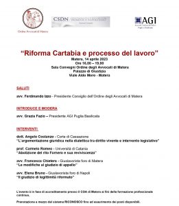 Ente organizzatore: Centro Nazionale Studi di Diritto del Lavoro "Domenico Napoletano" - Sez. Lucania