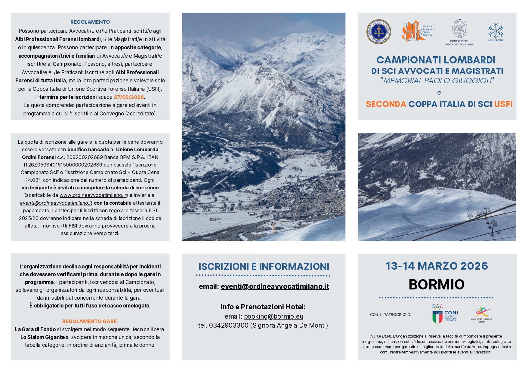 “Seconda Coppa Italia di sci” – Bormio, 13 e 14 Marzo 2026